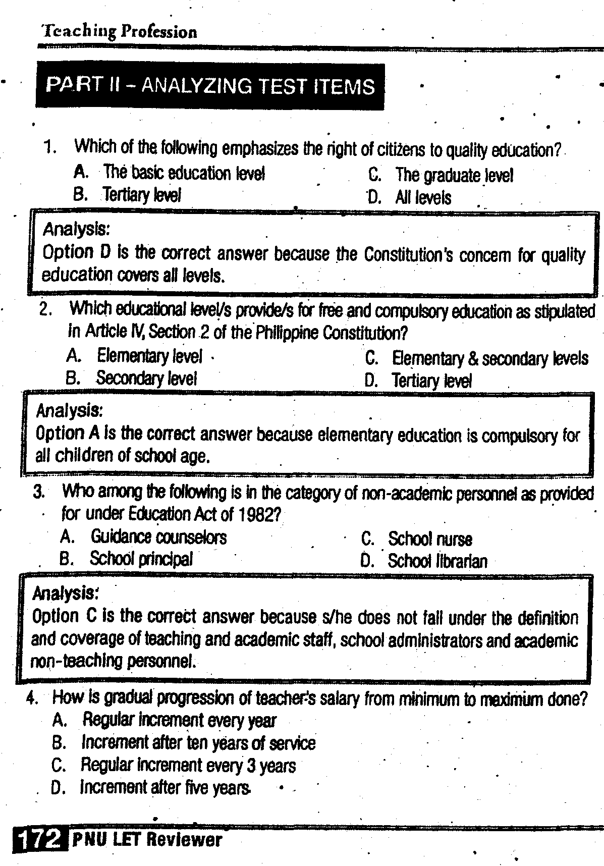 Teaching ProfessionLast updated on Aug 20, 2025CHAPTER HEADINGPART I - CONTENT UPDATEPART II - ANALYZING TEST ITEMSPART III - ENHANCING TEST TAKING SKILLSANSWER KEYSPro-Ed PNUNextSocial Dimensions in Education Developments in EducationPreviousAssessment and Evaluation of Learning 2RelatedSocial Dimensions in Education Developments in EducationAssessment and Evaluation of Learning 2Assessment and Evaluation of Learning 1Educational TechnologyDevelopmental Reading